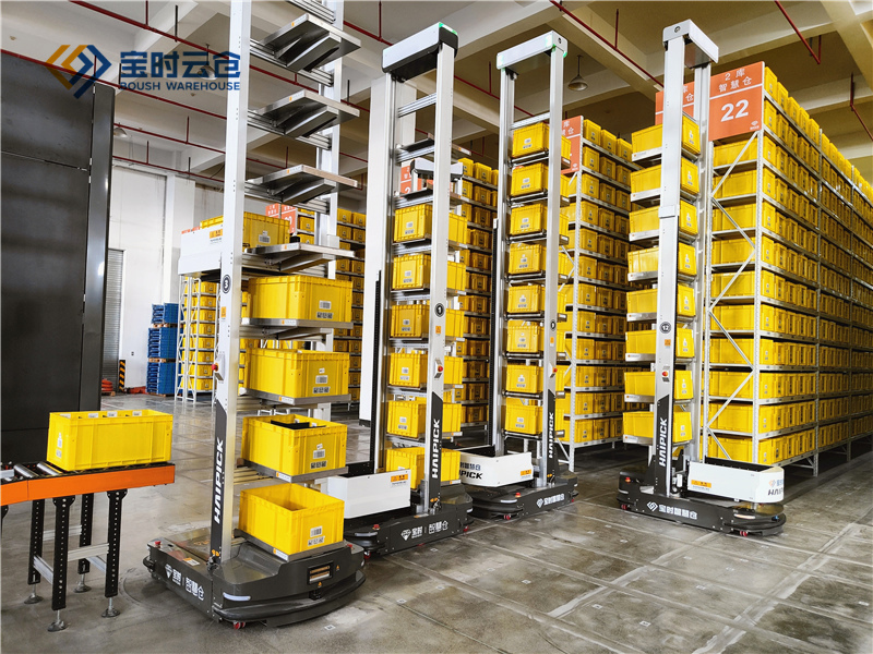 然而,在寶時智能云倉上演的卻是另一番景象:在偌大的倉庫里,只有AGV機器人,根據WMS系統的調度,輕輕松松到指定貨位揀取商品,實現“貨到人”揀選,打破了傳統的“人到貨”的揀選模式。